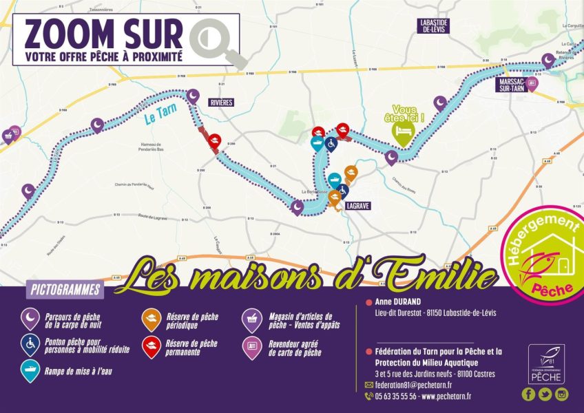 Gîte Pêche : spot réputé pour la carpe et le silure. Possibilité de laisser votre remorque bateau en sécurité et d'amarrer votre bateau, petite cabane pour ranger votre matériel