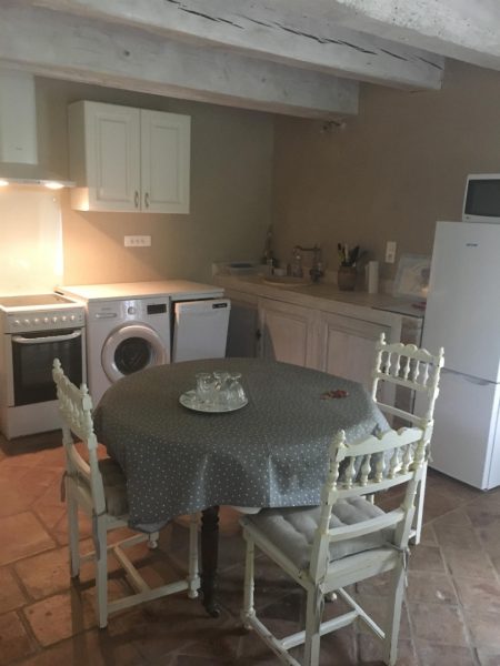 - Rez-de-chaussée : une grande pièce à vivre lumineuse avec cuisine ouverte équipée, coin salon avec canapé et TV. Séjour ouvert avec une grande baie vitrée (après deux marches) donnant sur la terrasse avec table à manger extérieure et transat pour se prélasser au soleil.