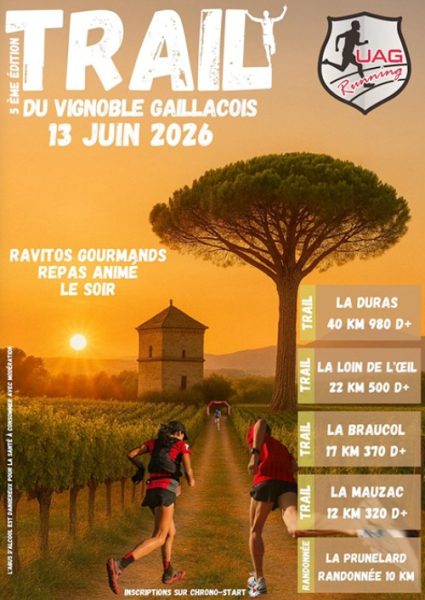 Visitez le site Web de l'organisation https://chrono-start.com/events/trail-des-vignobles-gaillacois/ pour obtenir les informations les plus récentes.