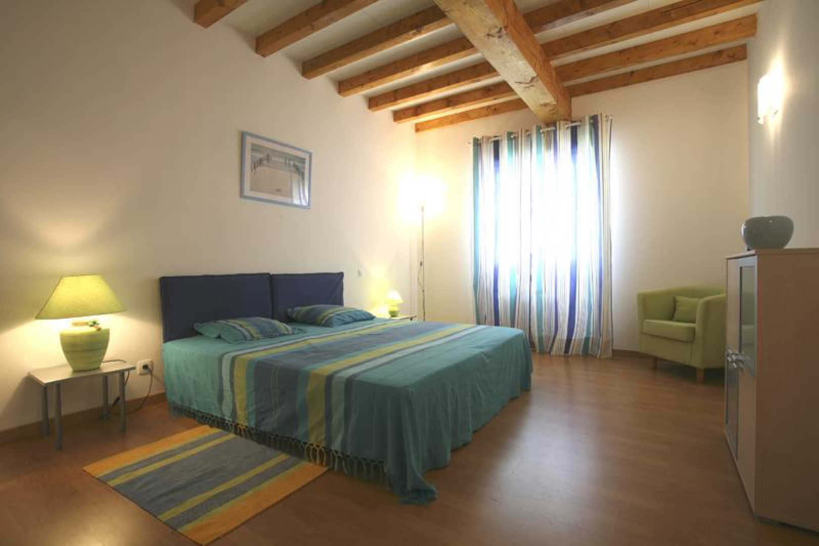 Se situe à l'étage, avec une petite terrasse donnant sur un vaste jardin avec portique, jeux extérieurs et piscine.