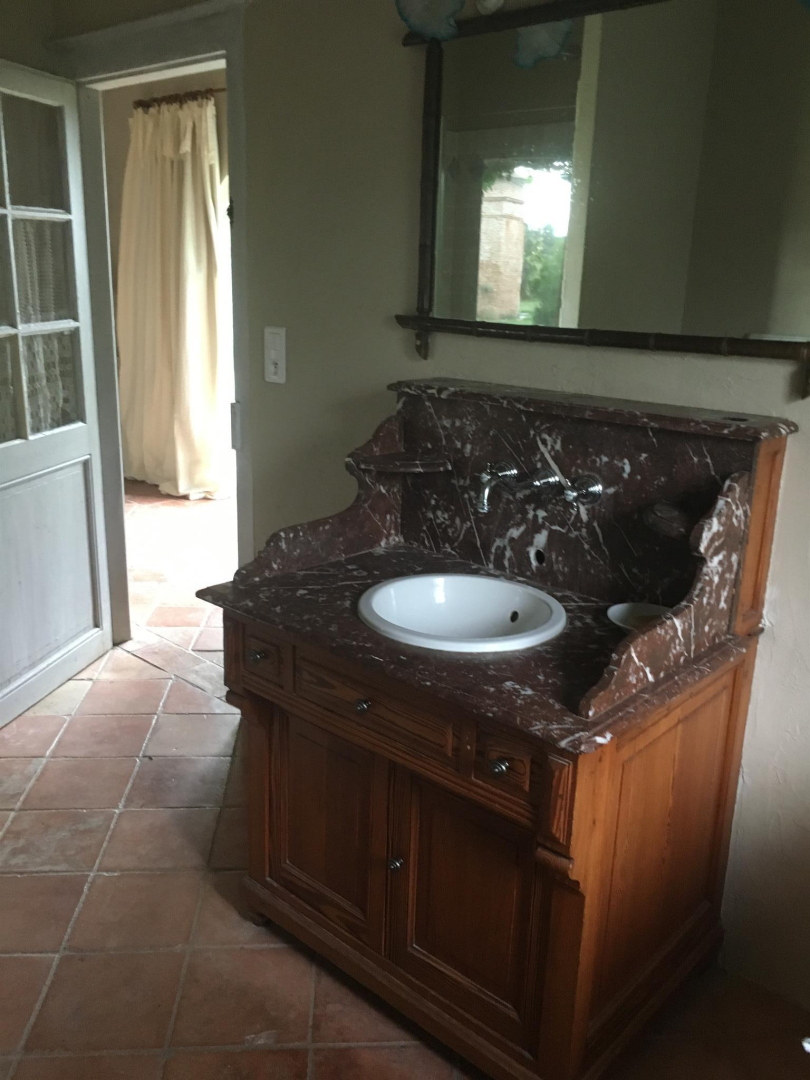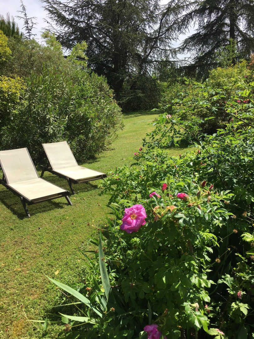 - Accès à l'étage (climatisé) avec un escalier en colimaçon en fer forgé : chambre avec un lit en 160 face à une grande fenêtre permettant d'apprécier la vue sur le jardin depuis le lit ! Depuis la chambre, accès à la salle d'eau avec douche, vasque et wc.