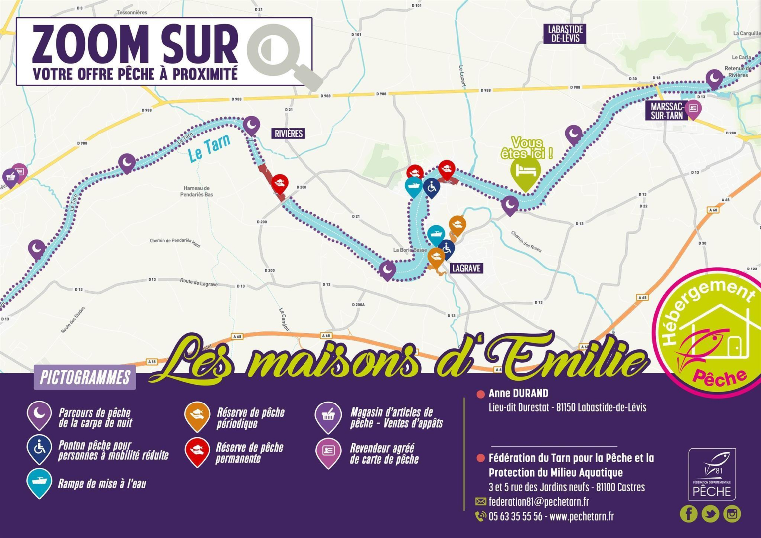 Gîte aménagé dans l'ancienne grange du XVIII° siècle, mitoyen à La maison d'Émilie, sans vis-à-vis. Grand et beau jardin paysagé, accès direct au Tarn, idéal pour les pêcheurs.