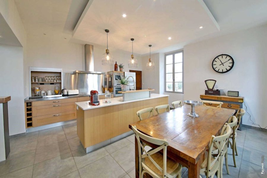 - cuisine ouverte sur le salon avec un îlot central et un bar pour vos apéritifs. Cuisine équipée : lave-vaisselle, réfrigérateur avec congélateur, micro-ondes, four, grille-pain, cafetière Nespresso et à piston, bouilloire.