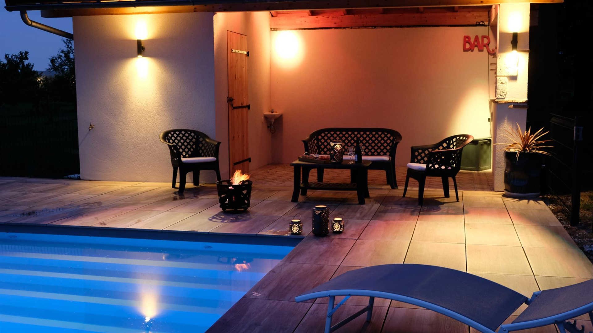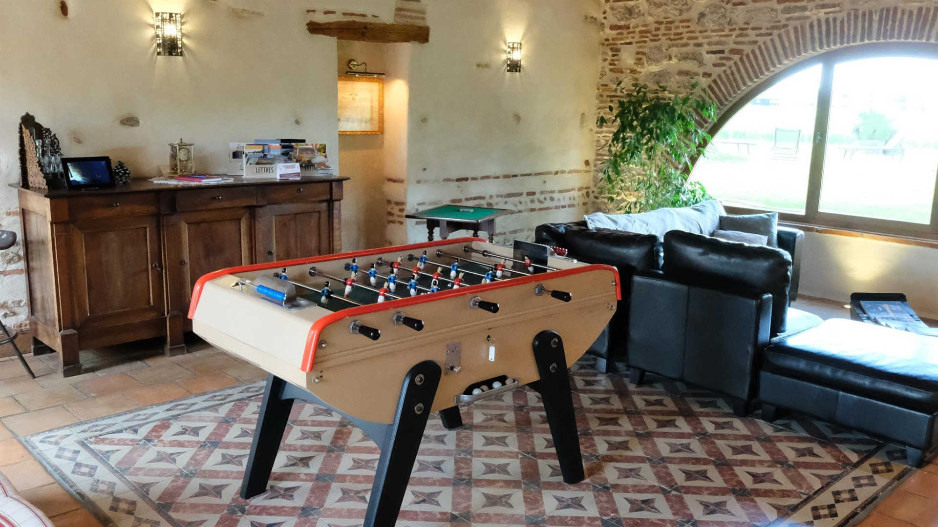 Tout est pensé pour les loisirs des petits et grands : baby-foot Bonzini B60, table de ping-pong, console XBOX 360 avec jeux sur DDUR + 2 manettes, home cinéma et ampli, TV écran plat 55', lecteur DVD Blu-ray, lecteur carte SD MP3, table de mixage... mais aussi transat, salon de jardin, barbecue, plancha