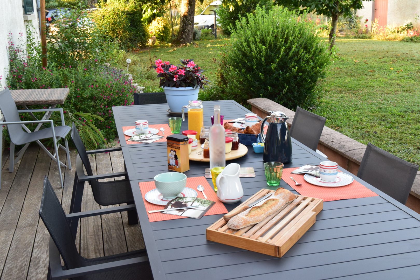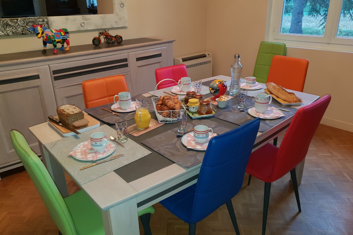 Un petit déjeuner continental vous sera servi dans la pièce de vie ou sur la terrasse extérieure (suivant la saison) avec confitures, yaourt, gâteaux fait maison avec les œufs des poules de la maison.