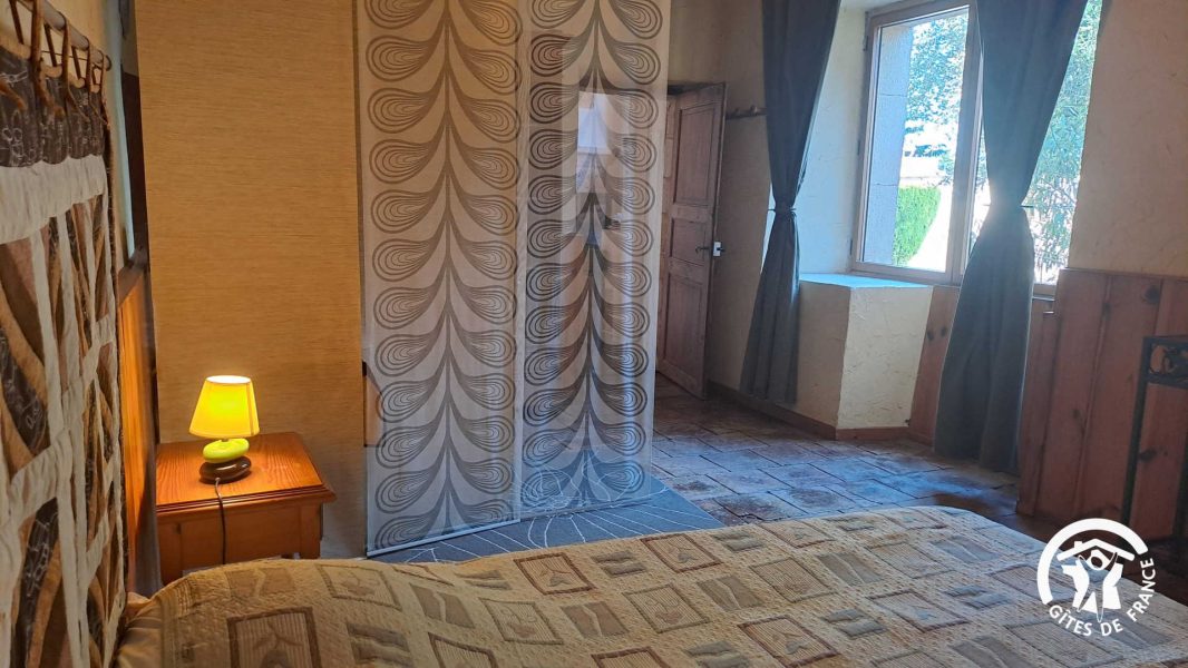 Mitoyen aux propriétaires, de plain-pied, avec accès par la cour du Mas, et coin jardin à l'arrière, donnant directement sur le sentier de randonnée de Cestayrols. Petite terrasse privée sans vis-à-vis de l'autre côté du gîte, accessible depuis l'une des chambres. Chauffage central dans le gîte.